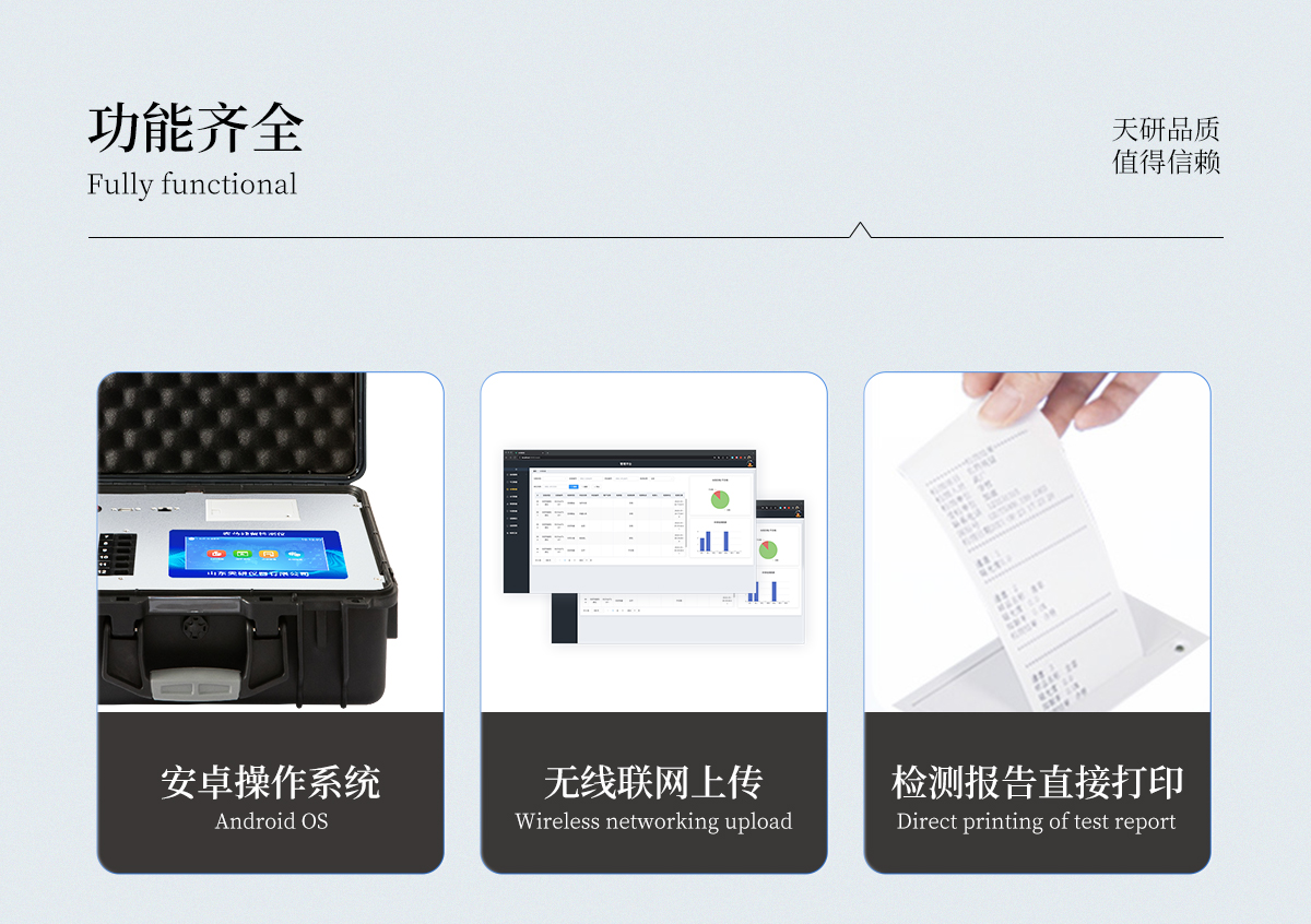 | 1) 可以通過GPRS模塊,將數據無線傳輸到手機或者指定網絡。 | 2) 5寸觸摸屏或者7寸觸摸屏,儀器默認為5寸屏。 | 3) 儀器加實現自身加熱功能 | 4) 可配置大容量鋰電池 |
