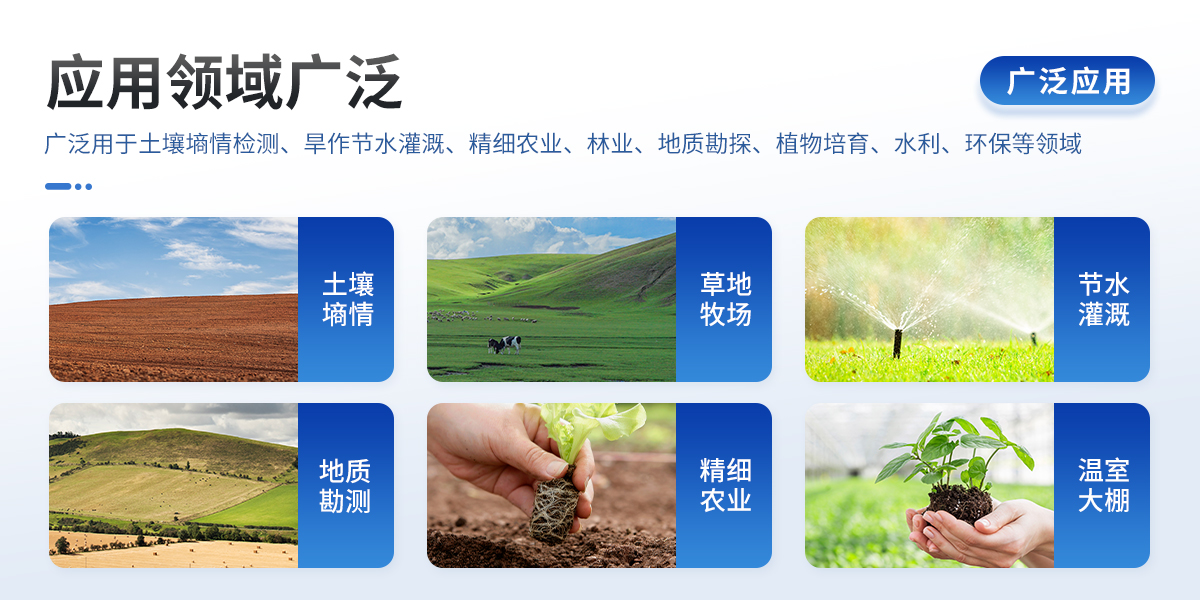 土壤水分測定儀采用FDR頻域反射原理,快速準確測量土壤中含水量,可對多處樣地、不同土壤深度的水分含量進行快速檢測和長期連續(xù)監(jiān)測。廣泛應用于土壤墑情檢測、旱作節(jié)水灌溉、精細農(nóng)業(yè)、林業(yè)、地質(zhì)勘探、植物培育等領(lǐng)域。